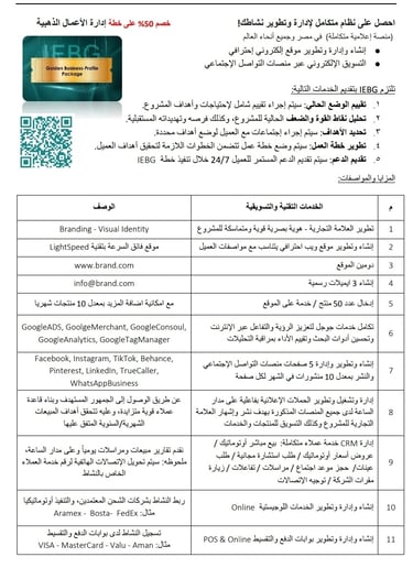 الخطة الذهبية لإدارة الأعمال ليست مجرد مجموعة من الميزات، إنها شراكة مع IEBG. نحن ملتزمون بنجاحك ونقدم لك الأدوات والموارد والدعم الذي تحتاجه لتزدهر في السوق الرقمي التنافسي.