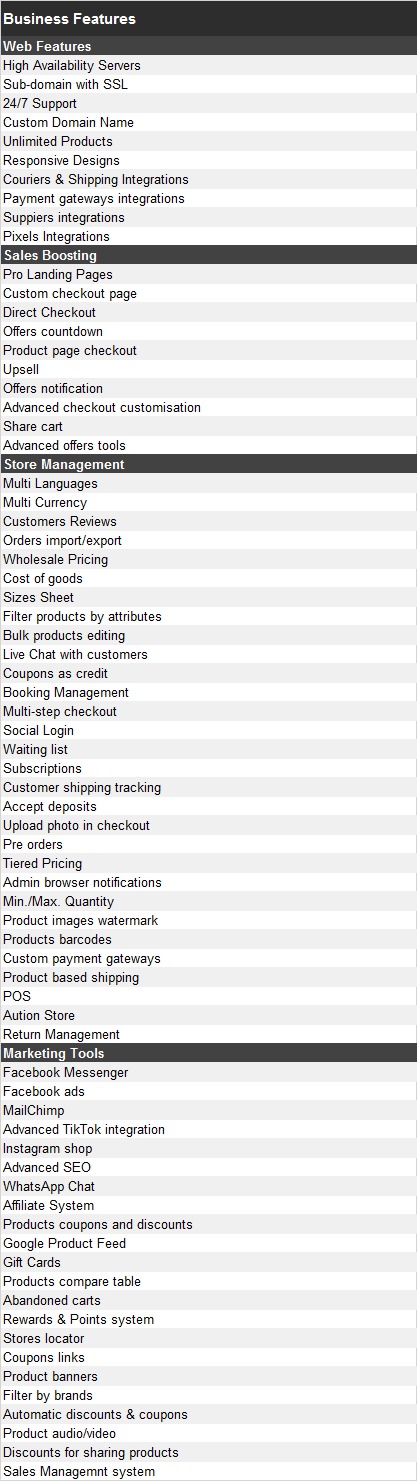 تقدم خطة إدارة الأعمال الذهبية مجموعة شاملة من الميزات.
